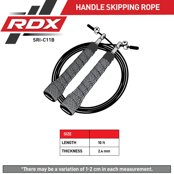 Featuring light polymer handles, the RDX Jump Rope is designed for those who enjoy intense training sessions and demand the very best from their equipment. The rope features a 10ft long, 2.4mm thick, adjustable PVC-coated steel wire that’s perfect for users looking for speed and dexterity. Two sets of ball bearings in the handles ensures smooth movement and rapid revolutions with each skip. Moreover, the polymer handles feature plastic caps that can be removed to add additional weights. The skipping rope comes complete with an attractive RDX bag so that you can keep your equipment stored securely and tangle-free.