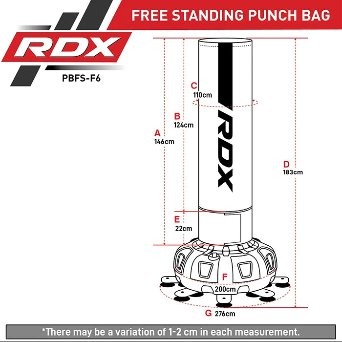 Are you ready to take your training to the next level? The RDX F6 6ft Kara Black Free-Standing Punch Bag is the perfect choice for fitness enthusiasts looking to upgrade their at-home workout and increase their performance in competitions. This robust bag will help you develop strength, power, agility, and accuracy as you practice your moves. With impressive features such as shock absorbent technology and resilient construction that can withstand even the strongest punches, this free-standing punch bag has everything a boxer needs to reach their goals faster.