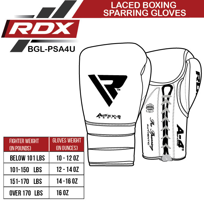 The Apex Series is designed to blast you ahead of the curve. The A4 Pro sparring series is developed with the help of pro boxing athletes that spend most of their day in the gym. Meticulous handcraftsmanship and battle-proven materials are a champions formula assembled together to bring you the safest training boxing gloves in the industry today. Lace-up, bite down on that mouth piece and put your training partner to work; do it in champion form.