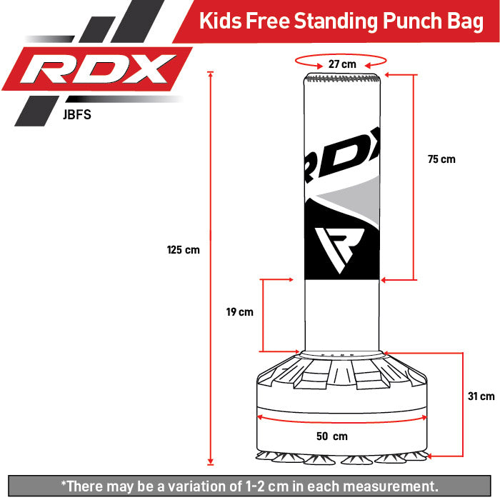 Cuando se trata de niños y juegos, pocas cosas pueden superar la emoción de tener un saco de boxeo. No sólo ofrece a los niños la oportunidad de desahogarse de una forma divertida e interesante, sino que también garantiza que se echarán unas risas muy necesarias. El saco de boxeo de pie infantil R8 de 4 pies 2 en 1 de RDX es la manera perfecta de ayudar a tu hijo a explorar su poder interior. Con su robusta estructura, los cómodos guantes y su impresionante altura de metro y medio, esta estación de entrenamiento hará que tus hijos vibren de emoción. Es una manera inmejorable de mantenerlos comprometidos con la actividad fÃsica saludable que promueve la aptitud y desarrolla la confianza y la coordinación. La piel Maya hide NTearxâ„¢ garantiza una larga durabilidad.