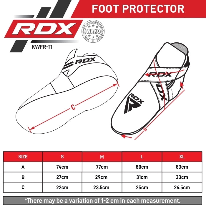 Mantén tu pie y tobillo protegidos con los protectores de pie T1 RDX, avalados y aprobados por WAKO como una de las mejores defensas para atletas durante la práctica de kickboxing. Ideales para el tatami o para combate de contacto completo, estos protectores te permiten entrenar con total confianza. Disfruta la sensación de formar parte de un grupo exclusivo al lucir el logo oficial de WAKO finamente cosido en tu equipamiento mientras sales a hacer historia.