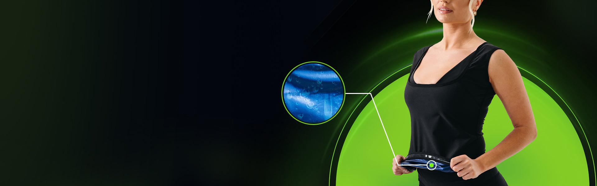 - Tejido elástico Instant SweatTM con revestimiento interior azul para un exterior duradero.